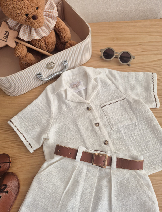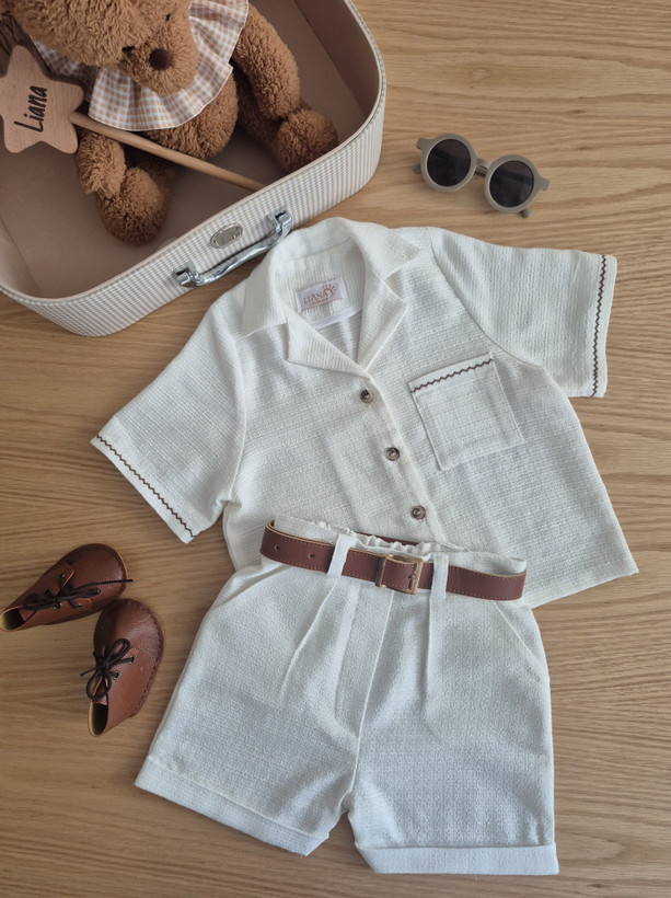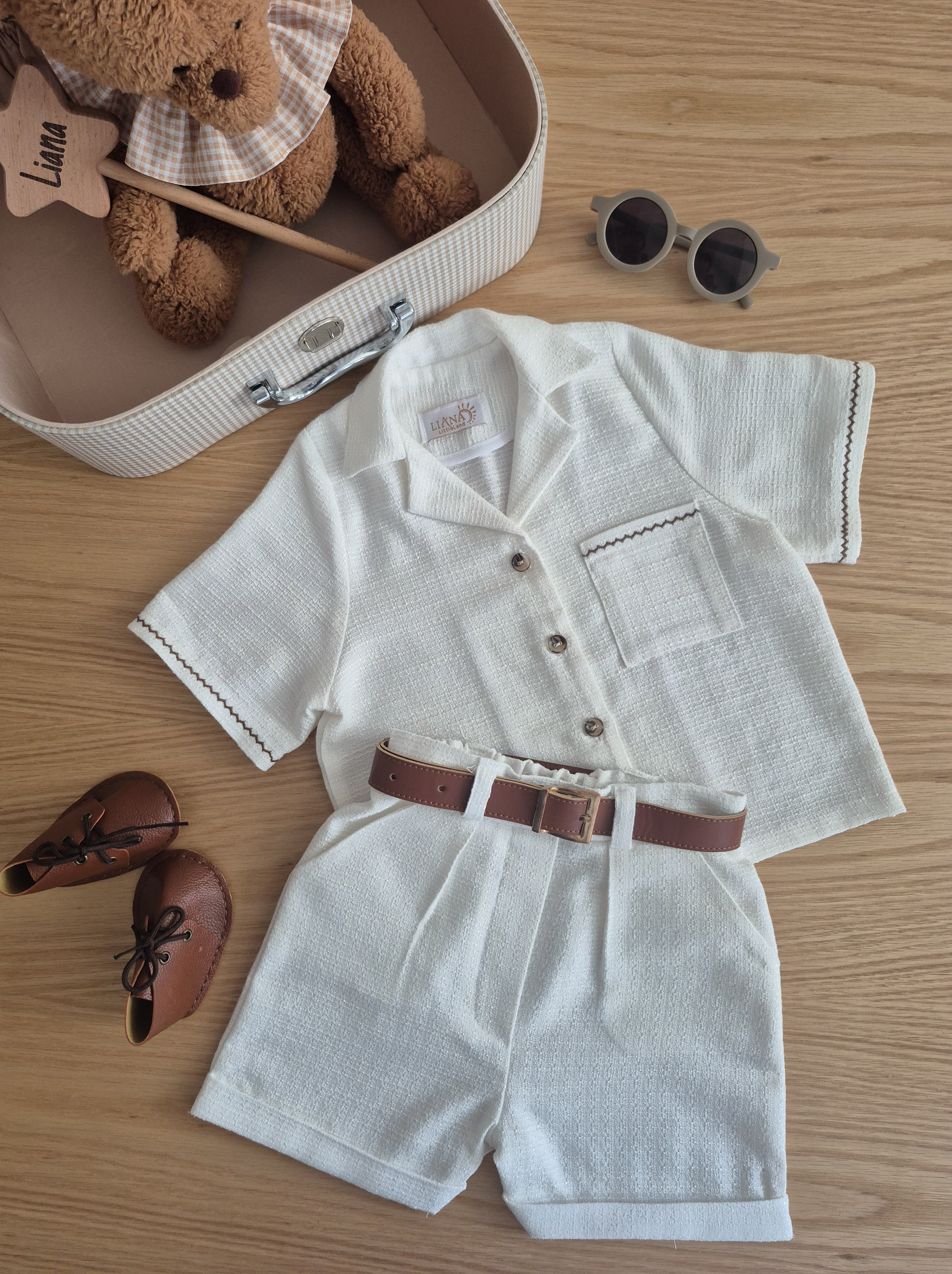 بلوز و شلوارک خامه ای رنگ گلدوزی شده