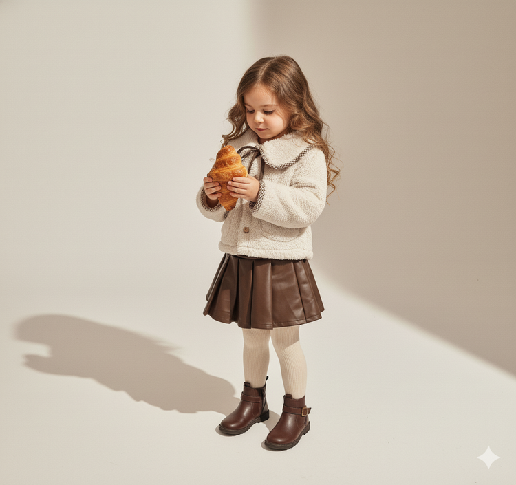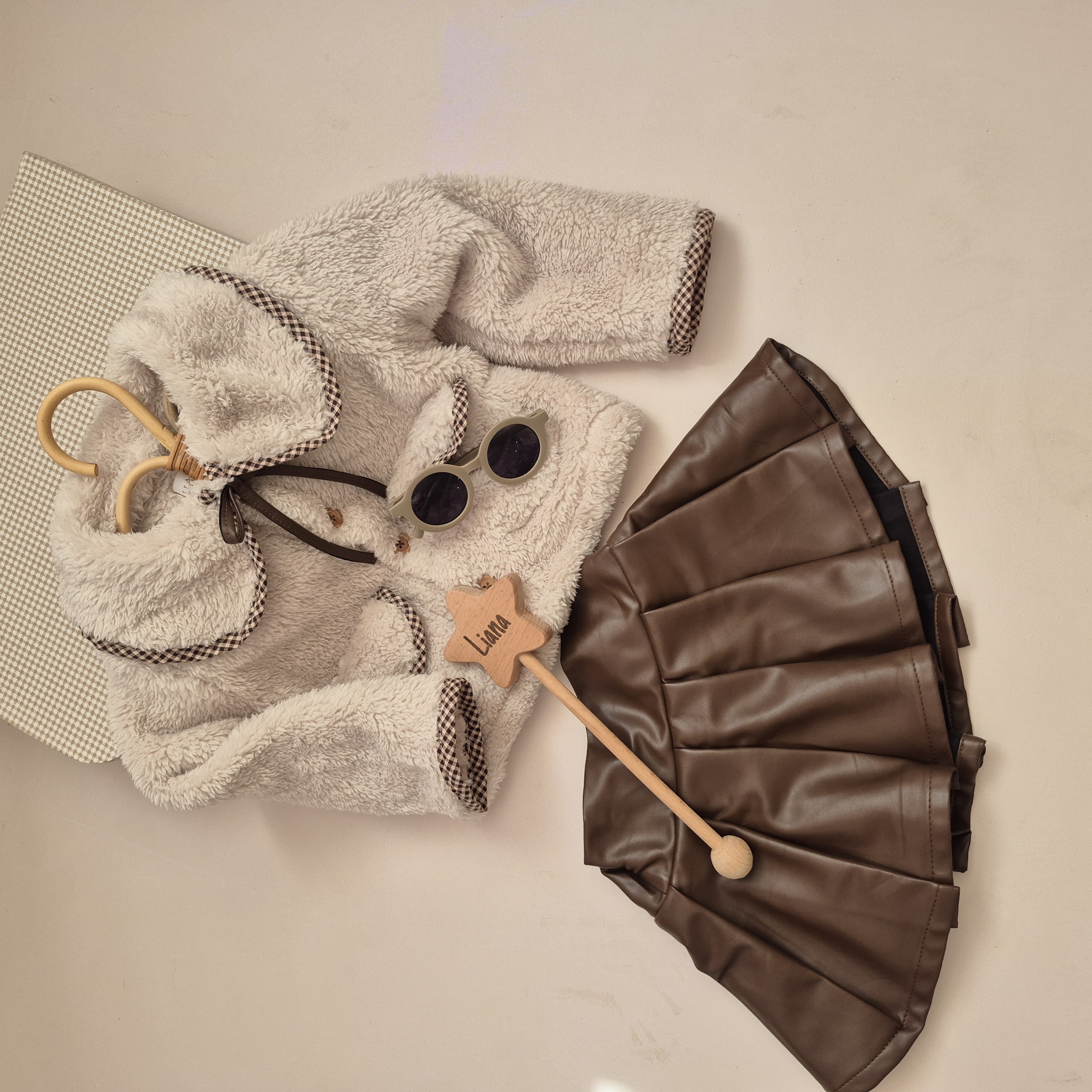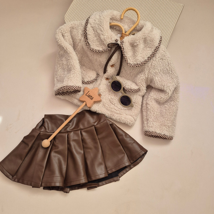 ست کت تدی و دامن چرم دخترانه مدل برفا